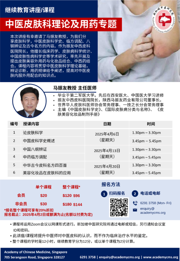 新加坡中医研究院 实体讲座